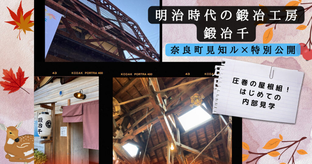 江戸時代には東大寺の錠前や鍵などを作り、明治時代に荷車の車輪作りなどを手掛けた鍛冶工房の鍛冶千。